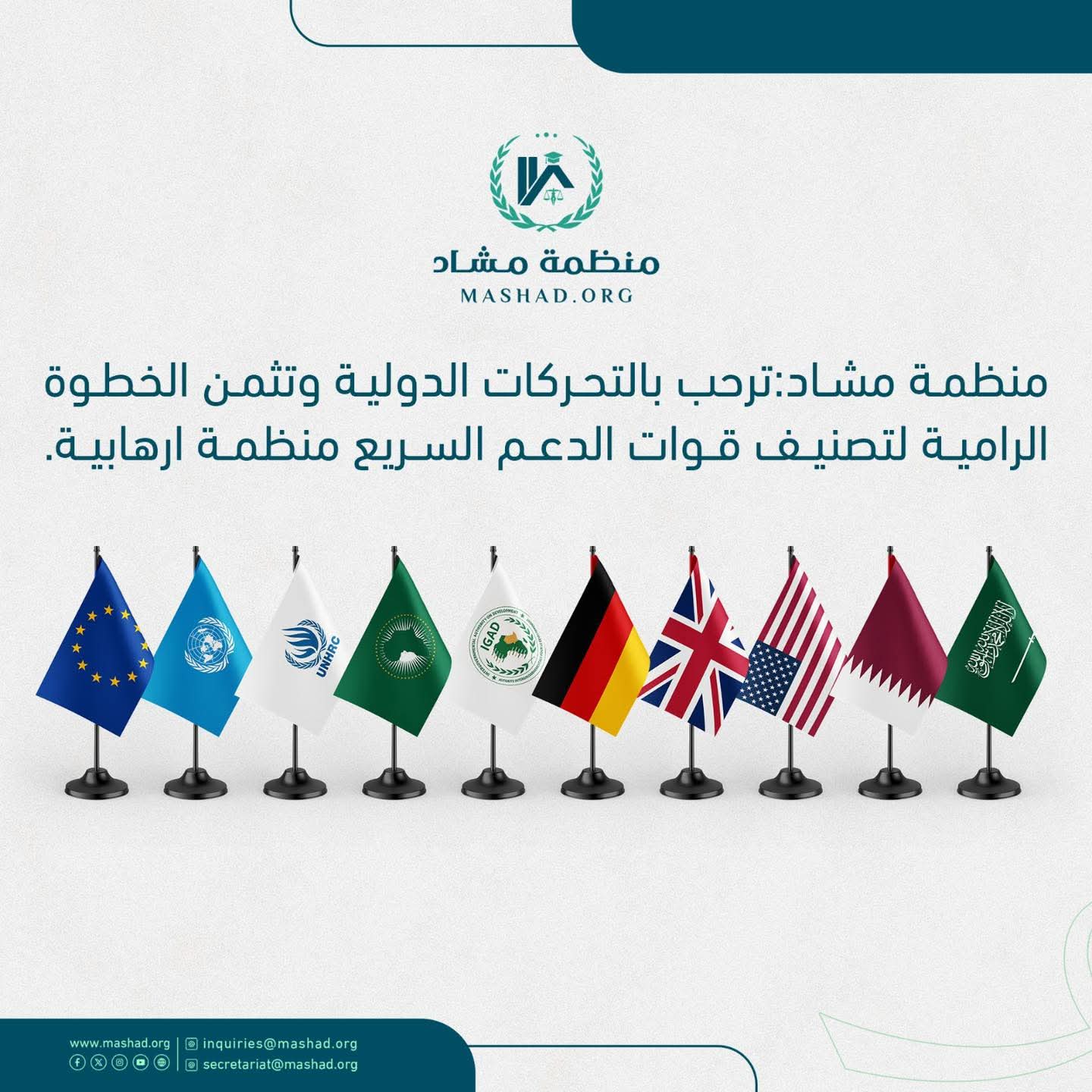 ترحب منظمة مشاد بالتحركات الدولية المتنامية، وتثمن الخطوة الرامية التي يتخذها الكونغرس الأمريكي لتصنيف قوات الدعم السريع منظمة إرهابية، باعتبارها اعترافًا واضحًا بحجم الفظائع والانتهاكات التي ارتكبتها هذه المليشيا ضد الشعب السوداني.لقد ظلّت منظمة مشاد، منذ اندلاع النزاع، تحذر من الجرائم الواسعة التي شملت القتل الجماعي، والاغتصاب، والتعذيب، والنهب، والتهجير القسري، والتدمير الممنهج للممتلكات المدنية، وهي أفعال ترقى إلى جرائم حرب وجرائم ضد الإنسانية وفقًا للقانون الدولي.وترى المنظمة أن هذه الخطوة تمثل تطورًا إيجابيًا مهمًا في مسار الاعتراف الدولي بحقيقة المأساة التي يعيشها السودان، غير أنها تظل غير كافية أمام حجم الكارثة الإنسانية التي تتفاقم يومًا بعد يوم في دارفور والفاشر وغيرها من المناطق المنكوبة.وتدعو منظمة مشاد المجتمع الدولي، والأمم المتحدة، والاتحاد الإفريقي، وجامعة الدول العربية إلى التحرك الفوري والحاسم لحماية المدنيين وفرض عقوبات رادعة على جميع الأطراف والدول التي تموّل أو تدعم مليشيا الدعم السريع، وعلى رأسها الإمارات وكينيا، ومساءلة كل من يشارك في تزويد هذه المليشيا بالدعم المالي أو العسكري أو اللوجستي.كما تؤكد المنظمة على ضرورة إحالة قادة الدعم السريع وشركائهم إلى العدالة الدولية، ومحاسبة المتورطين في الجرائم التي ارتكبت في دارفور وغيرها من مناطق السودان، وذلك لضمان العدالة وإنصاف الضحايا، وتعزيز السلام والأمن الدوليين.إن الخطوة الرامية لتصنيف قوات الدعم السريع منظمة إرهابية تمثل اختبارًا حقيقيًا لمدى جدية المجتمع الدولي في الدفاع عن مبادئ العدالة والإنسانية. فالمطلوب اليوم ليس مجرد بيانات إدانة، بل تحركات عملية عاجلة توقف نزيف الدم وتحمي المدنيين وتضمن محاسبة الجناة.تؤكد منظمة مشاد لحقوق الإنسان التزامها الثابت بمتابعة وتوثيق الانتهاكات في السودان، وتواصل نداءها إلى العالم من أجل تضامن فاعل ومسؤول مع الشعب السوداني، وإرساء سلام عادل ومستدام قائم على العدالة والمساءلة والكرامة الإنسانية.