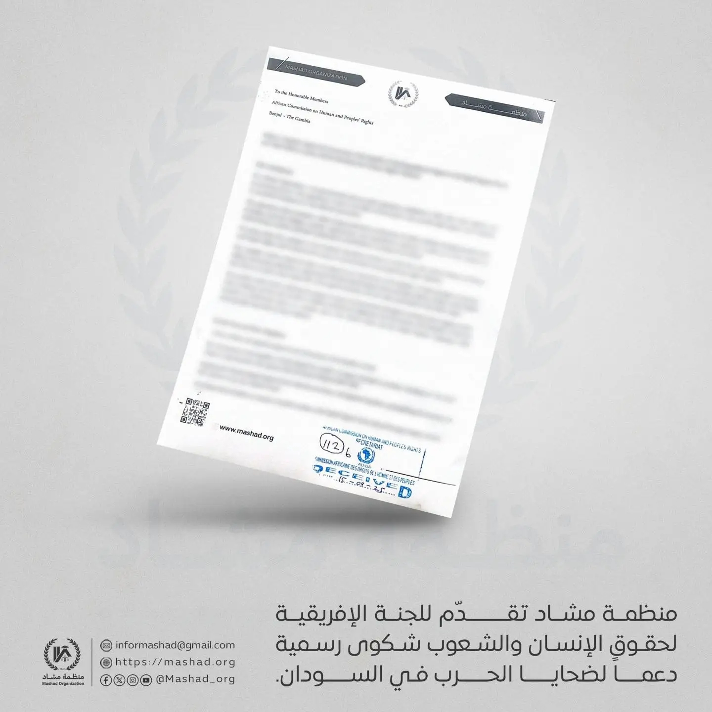 منظمة مشاد تقدم شكوى رسمية إلى المفوضية الأفريقية لحقوق الإنسان والشعوب دعماً لضحايا الحرب في السودان