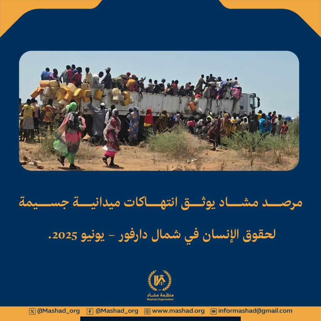 ⭕️مرصد مشاد يوثق انتهاكات ميدانية جسيمة لحقوق الإنسان في شمال دارفور – يونيو 2025.⭕️