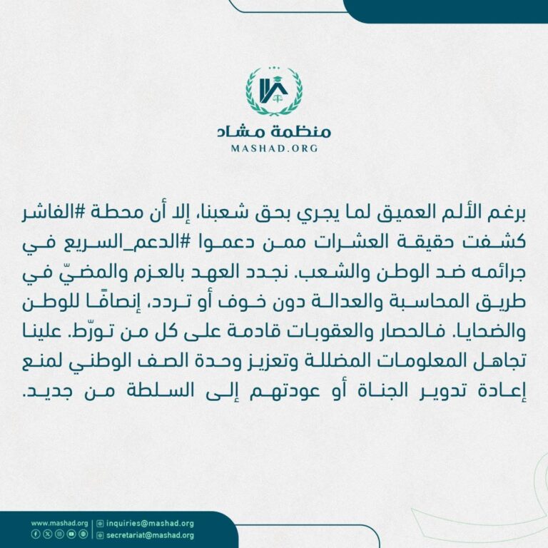 مرصد مشهد يدين المجازر المستمرة في الفاشر ويدعو للتدخل الدولي العاجل
