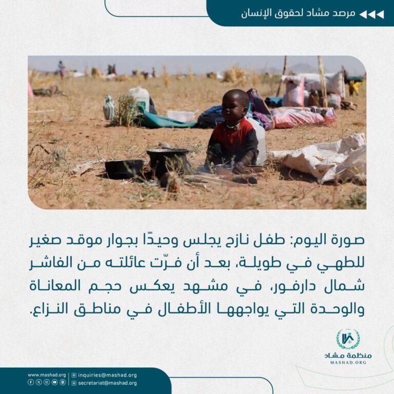 إقرأ المزيد⭕️تنعي منظمة مشاد ببالغ الحزن سبعة من أعضاء مكتبها في الفاشر. قلوبنا مع أسرهم وندعو العالم للوقوف ضد العنف وحماية المدنيين.Mashad Organization mourns with deep sorrow the loss of seven of its office members in El Fasher. Our hearts are with their families, and we call on the world to stand against violence and protect civiliansما يجري الآن في الفاشر ومحيطها من مجازر مروّعة بحق المدنيين يمثل كارثة إنسانية غير مسبوقة في تاريخ السودان الحديث، إذ تتصاعد الانتهاكات البشعة وسفك الدماء دون رادع.إننا نؤكد أن استهداف المدنيين جريمة حرب وجريمة ضد الإنسانية، وندعو المجتمع الدولي إلى تحرك عاجل لحماية الأبرياء ووقف الإبادة الجماعية فوراً