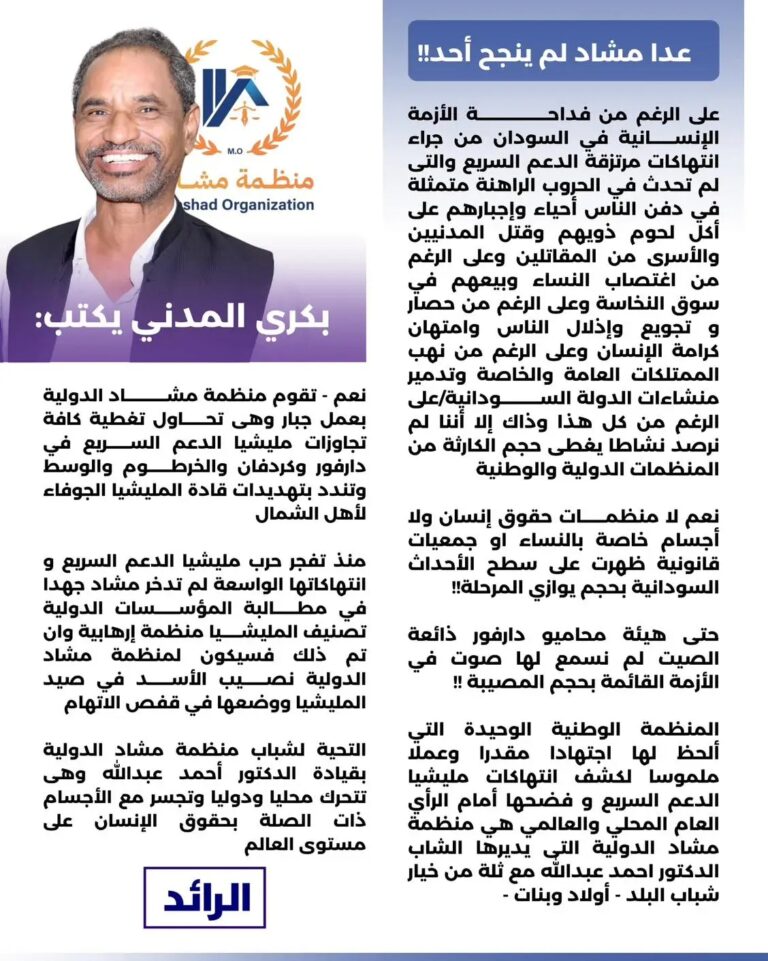 Mashad Observatory: Targeting Civilians and Tribal Leaders in North Kordofan Is a Crime Against Humanity Revealing the Dangerous Intent of the Rapid Support Forces to…