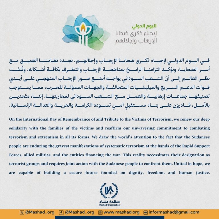 On the International Day of Peace: Mashad Calls for a Just and Sustainable Peace in Sudan and the World On the International Day of Peace,…