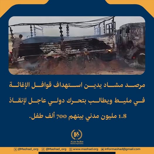 ⭕️Mashad Observatory Condemns the Targeting of Humanitarian Convoys in Mellit and Calls for Urgent International Action to Save 1.8 Million Civilians, Including 700,000 Children⭕️
