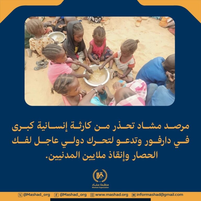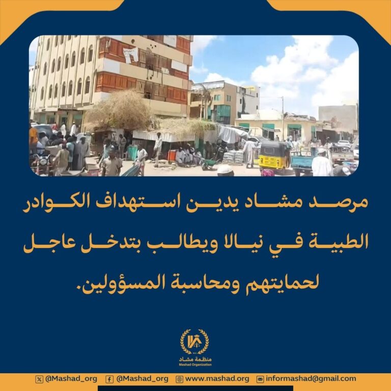 تُعرب منظمة مشاد لحقوق الإنسان والتنمية الإنسانية عن بالغ قلقها ورفضها القاطع لما أعلنته قوات الدعم السريع وحلفاؤها بشأن تشكيل ما يُسمى بـ”حكومة”، في خطوة…